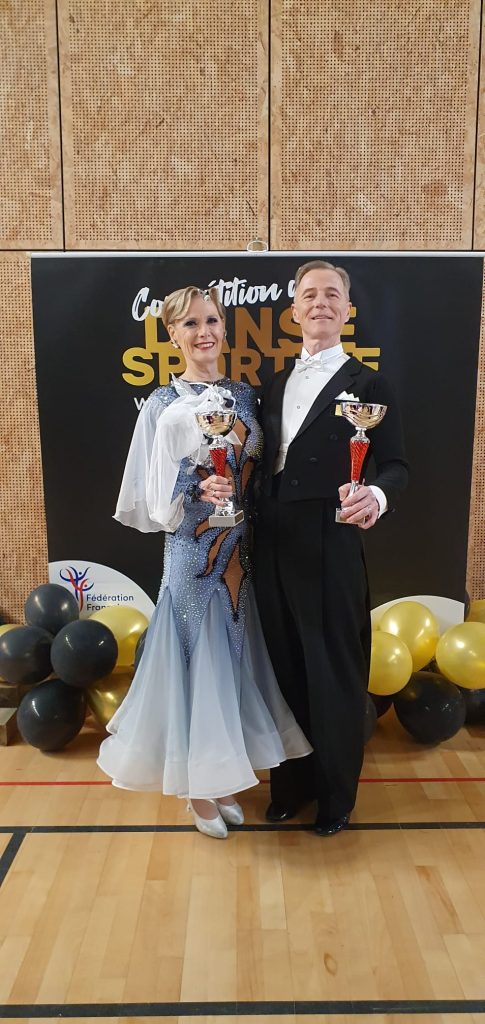 Ce week-end Hélène et Éric, nos professeurs de danse de salon, sont devenus champions de la Nouvelle-Aquitaine en Danses Standard Senior 4 ainsi que champions inter régionaux : Bretagne, Normandie, Centre Val de Loire, Hauts-de-France, Nouvelle-Aquitaine et Pays de la Loire.